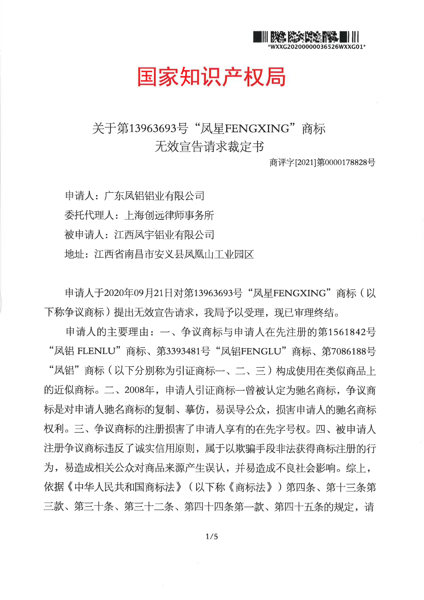 甘南辉知队 | 国家知识产权局:“凤星”商标无效